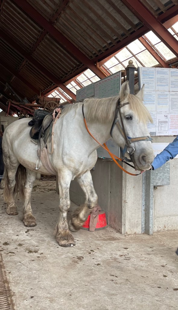 I introduce you to PETER THE HORSE! I am not messing with you. The horse’s name was Peter, too! I couldn’t believe it! Everyone got a kick out of it. I don’t think that Petey was giving me the stink eye in the above picture, but he clearly didn’t like what he was getting into. Getting on to the horse was not as smooth as I would have liked. Let me paint a picture for you: It was definitely not one of those old westerns where the rider was hopping on like they were on a trampoline. It was more like Herman Munster trying to get into a Fiat. My wearing jeans probably didn’t help the cause either…😆