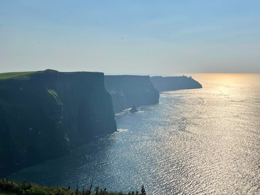 Breathtaking is really the only word I can come up with to describe this truly magical spot. At over 800 feet tall at its highest point, it is hard to understand this natural wonder. The cliffs are truly majestic, and the pictures don’t do it justice. The sun was OUT yesterday, and it was BRIGHT! A brightness that maybe we aren’t used to in the States, due to fog and air pollution, but my sunglasses weren’t really helping with the piercing sun! Scenes from one of the Harry Potter movies was filmed here at the Cliffs. Finally, a couple that was sitting behind me on the bus got engaged on top of the cliffs! A day they will never forget, I’m sure. I didn’t get engaged up there yesterday, but it will be a day I don’t soon forget either!