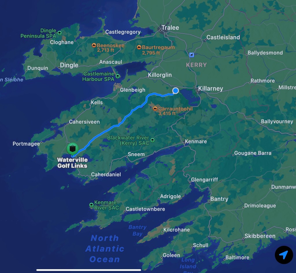 What I experienced yesterday driving from my hotel in Killarney to play a round of golf at one of the finest golf courses on the planet was truly terrifying. Words can not even describe the experience. It was 60+ minutes of the most sweat inducing, white-knuckle, terrifying driving experiences of my life. There is not a road in Greater Boston that compares to this. The only thing I can compare this to is the Jamaica Way. But reduce its four lanes to 1 and a half. But have cars and trucks zooming past at full speed. And drive on the left side, and not be able to see oncoming cars until 20-25 feet before they are mirror-to-mirror with you. Then also add some of the most breathtaking landscape and views you’d ever want to look at, but you can’t, because there is a cliff on your left ready to accept your car into the depths of this canyon. Get the picture?