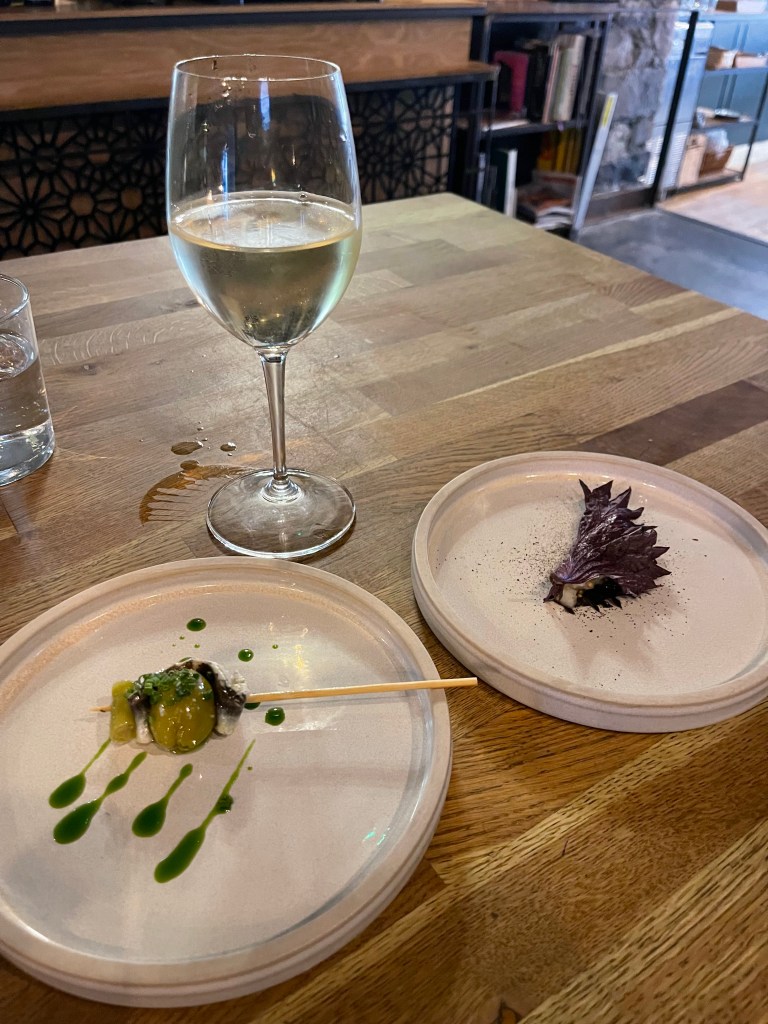 From the Gaelic word for bird, this Spanish inspired bakery, restaurant and restaurant is a cozy little spot with BIG flavors! They offered up two small dishes that I probably would not have ordered if I were there on my own. I can’t even describe one of the plates, but the second one was a taster that include an anchovie, an olive and a jalapeño pepper and WOW was there some flavor. Add in a great Spanish glass of wine, and this was a great stop on the tour.