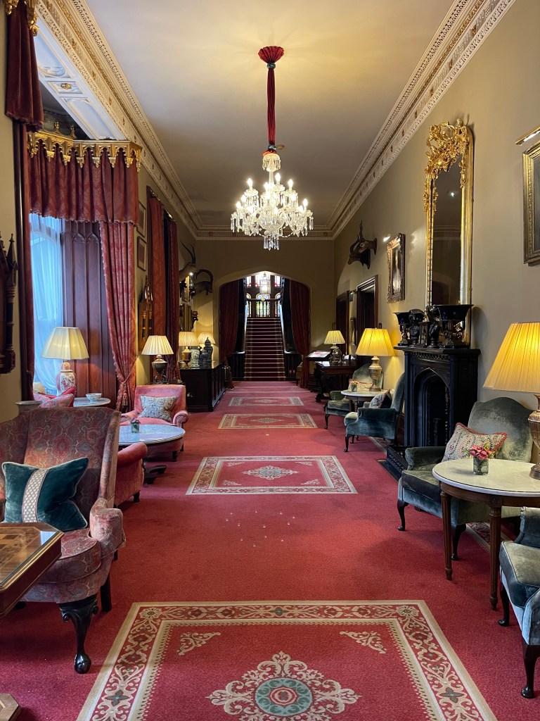 Dromoland Castle Hotel is about 75 minutes south of Galway. As soon as you drive on the grounds, you quickly realize you are someplace special. My long time friend from Trinity College, Jonathan (Bama) Epstein is the Owner/Operator of a wonderful travel company called Celebrated Experiences. They focus on helping clients create unforgettable vacation experiences in the UK, and have recently expanded to Italy. He connected me with one of his Ireland experts and am I ever glad he did! She suggested early on that I spend a night a castle…specifically THIS castle. It would be a splurge, for sure, but well worth it! The property is absolutely stunning! Words will not do it justice, so I will try with pictures.